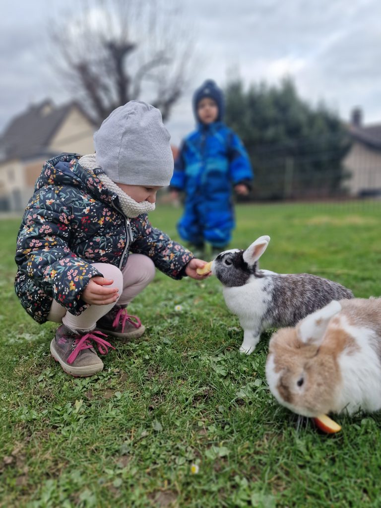 Tiere schaffen Nähe, wecken Neugier und wirken beruhigend auf Kinder. In meiner Kindertagespflege erleben die Kinder regelmäßig den Kontakt zu unseren Tieren – ganz bewusst und liebevoll begleitet. Die tiergestützte Pädagogik fördert wichtige Fähigkeiten wie Empathie, Verantwortungsbewusstsein, Konzentration und soziales Miteinander. Ob beim Beobachten, Füttern oder Streicheln – die Kinder lernen mit allen Sinnen und erleben ein besonderes Miteinander, das Vertrauen schafft und Freude macht.