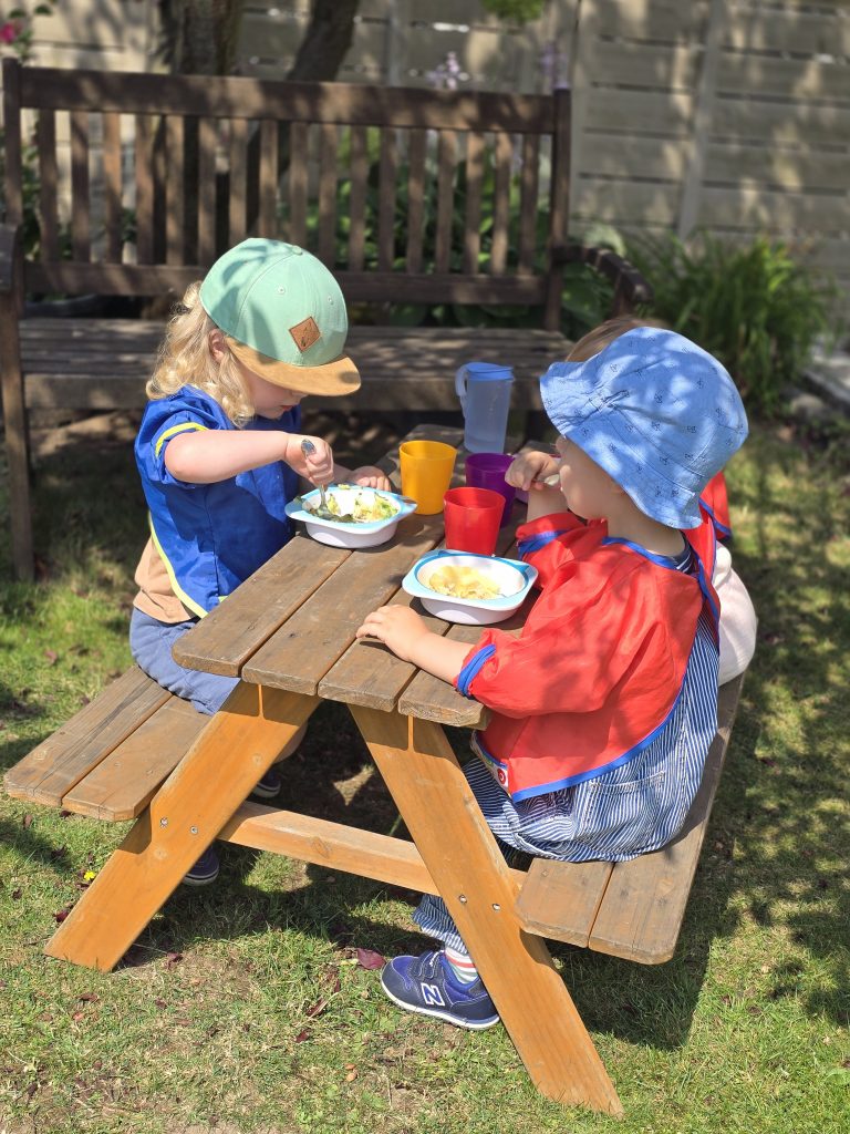 Mahlzeiten (Frühstück, Mittagessen und Snackpausen) werden frisch zubereitet und orientieren sich an den Bedürfnissen und auch Wünschen der Kinder. Beim gemeinsamen Essen erleben sie nicht nur den Genuss, sondern entdecken neue Lebensmittel, stärken ihre Selbständigkeit und entwickeln eine Gemeinschaft und Rituale.